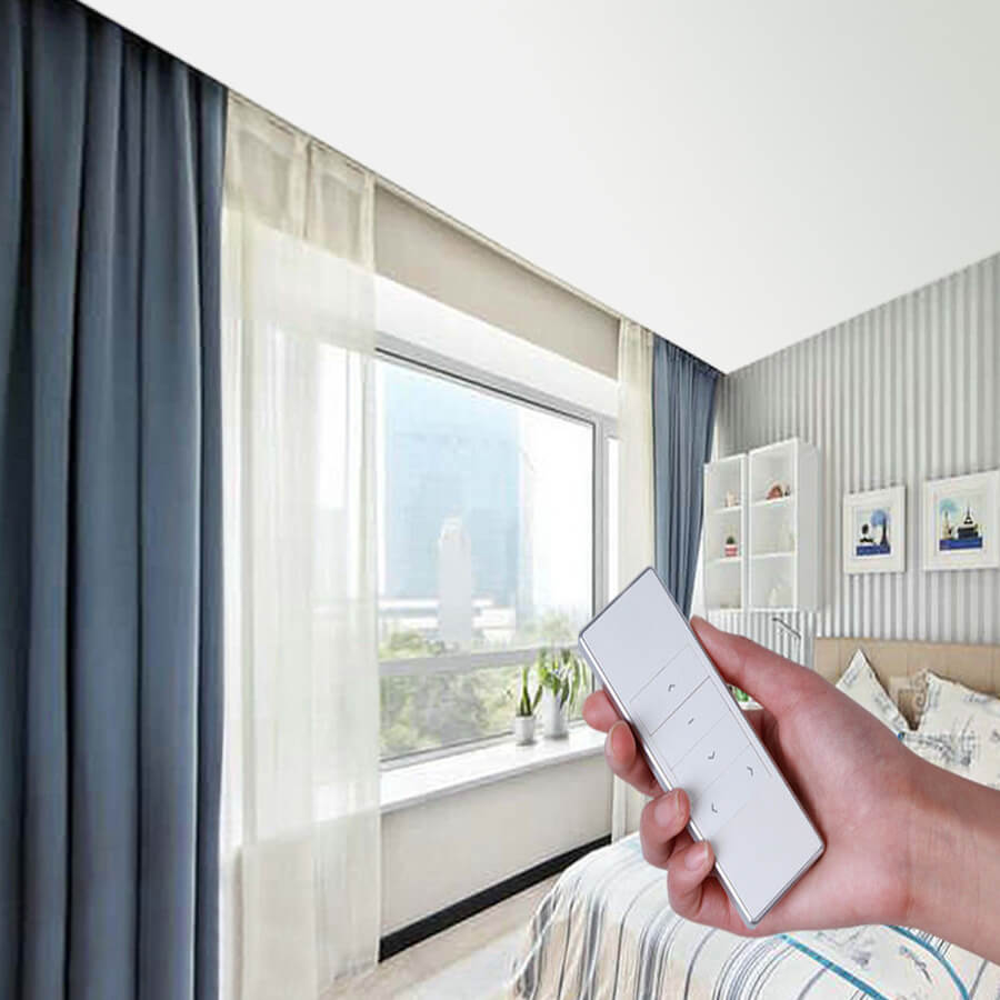 Remote-controlled motorized curtains are a simple and convenient choice. You can use a handheld remote to open and close your curtains with ease. This option is an excellent entry point for homeowners new to motorized window coverings.